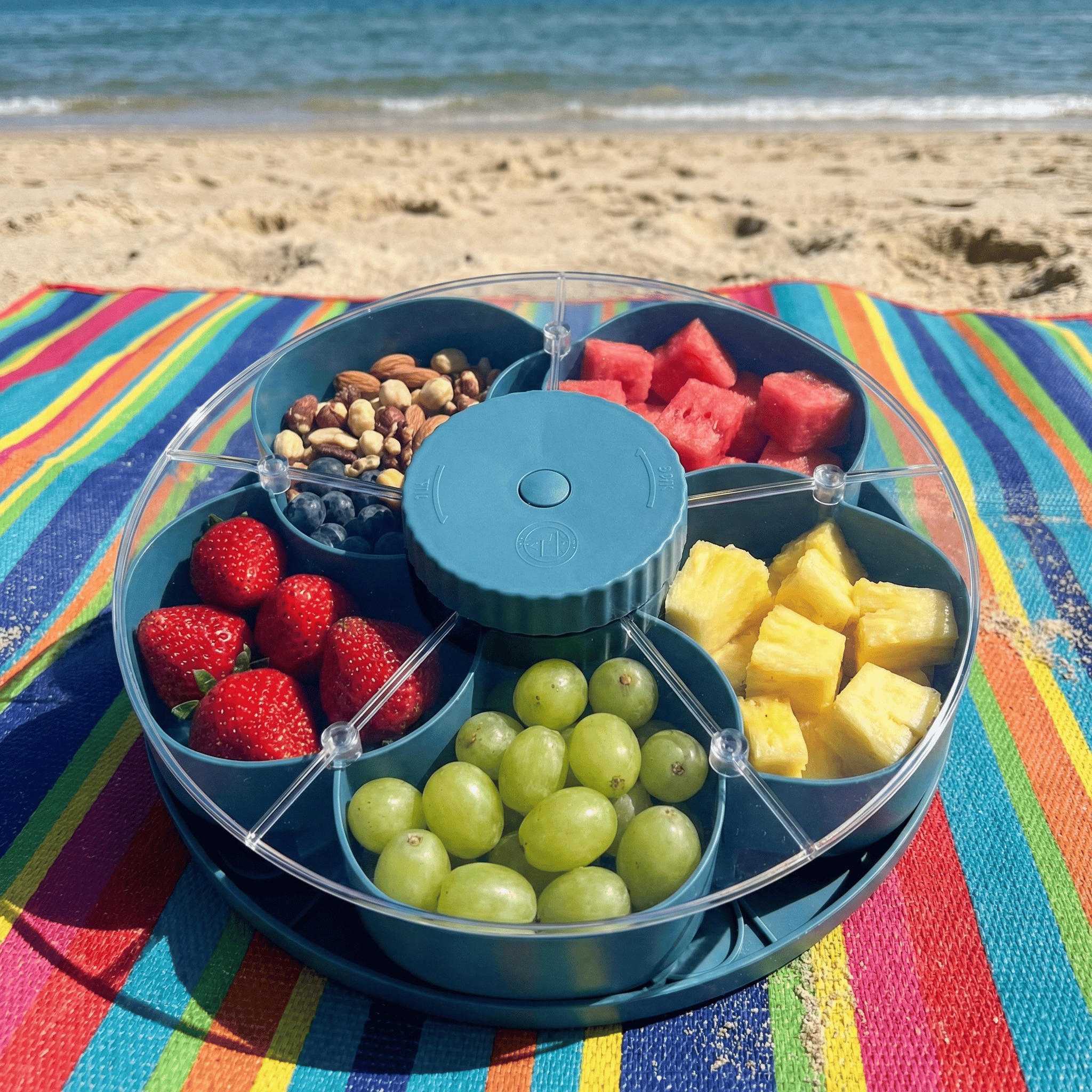 Upgrade your summer gatherings with the Rotating Snack Storage Tray — specifically engineered with a 360° rotating shield to keep your snacks crisp, fresh, and 100% protected from outdoor elements. Perfect for pool days, backyard BBQs, and beach trips where food safety comes first. ☀️️